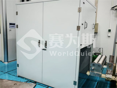 粉碎机整体加装隔声罩,选用钢制隔声门,上下开门方便进料,细节密封,同时填充吸音,隔音材料。