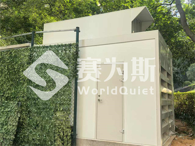 2.隔声罩含吸隔声模块、隔声检修门、进风百叶消声器、排风片式消声器(带轴流风机)。正面设进风消声器与检修门,散热口装消声风道及排风装置,出风口避开居民楼。